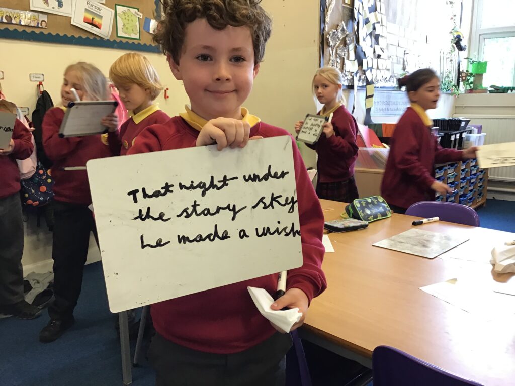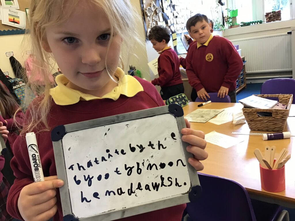 Phase 3 – this is the writing phase. In this phase, the teacher scaffolds the writing which supports the children in their progress and development of writing.