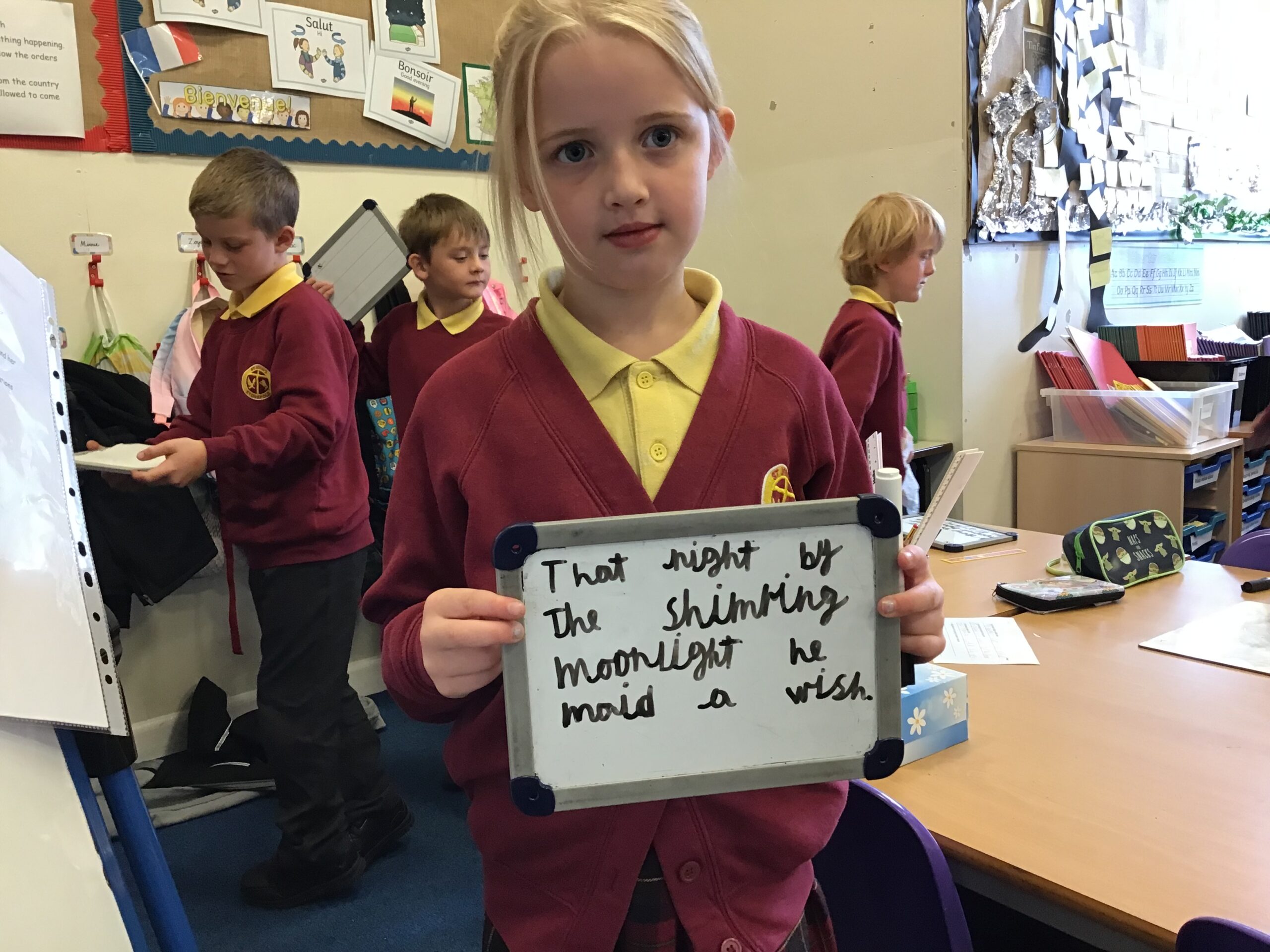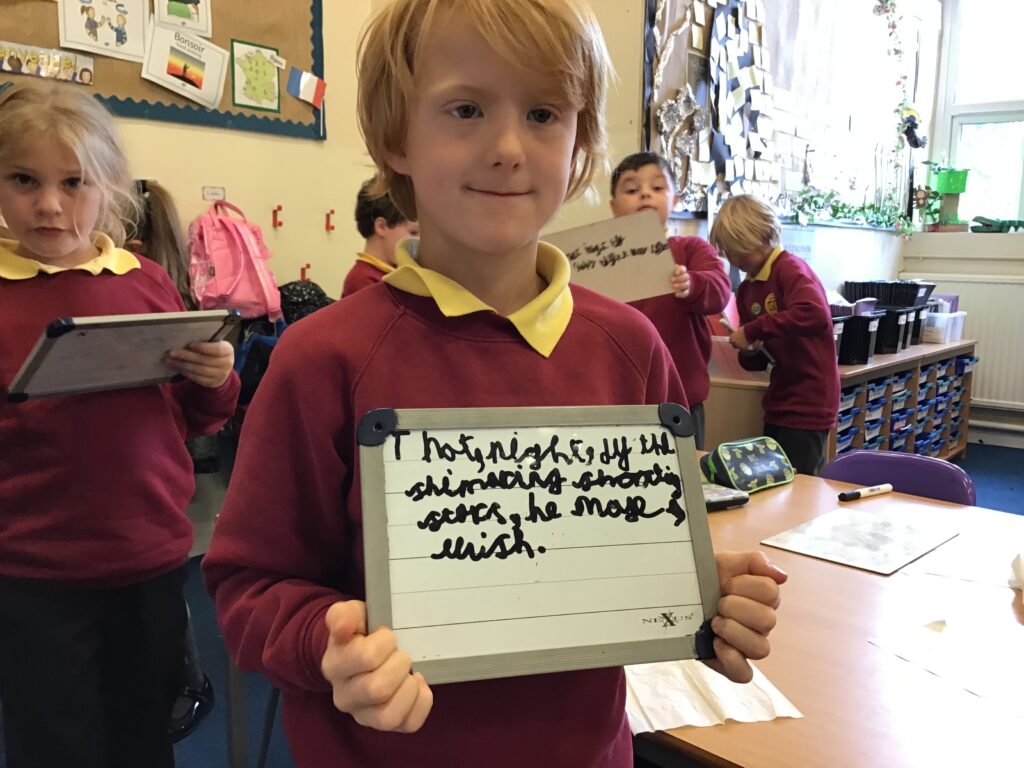 In Key Stage One and Key Stage Two classes, grammar is taught discretely through phases one and two and its application is taught during phase 3. Spelling is taught discretely and application is encouraged throughout.