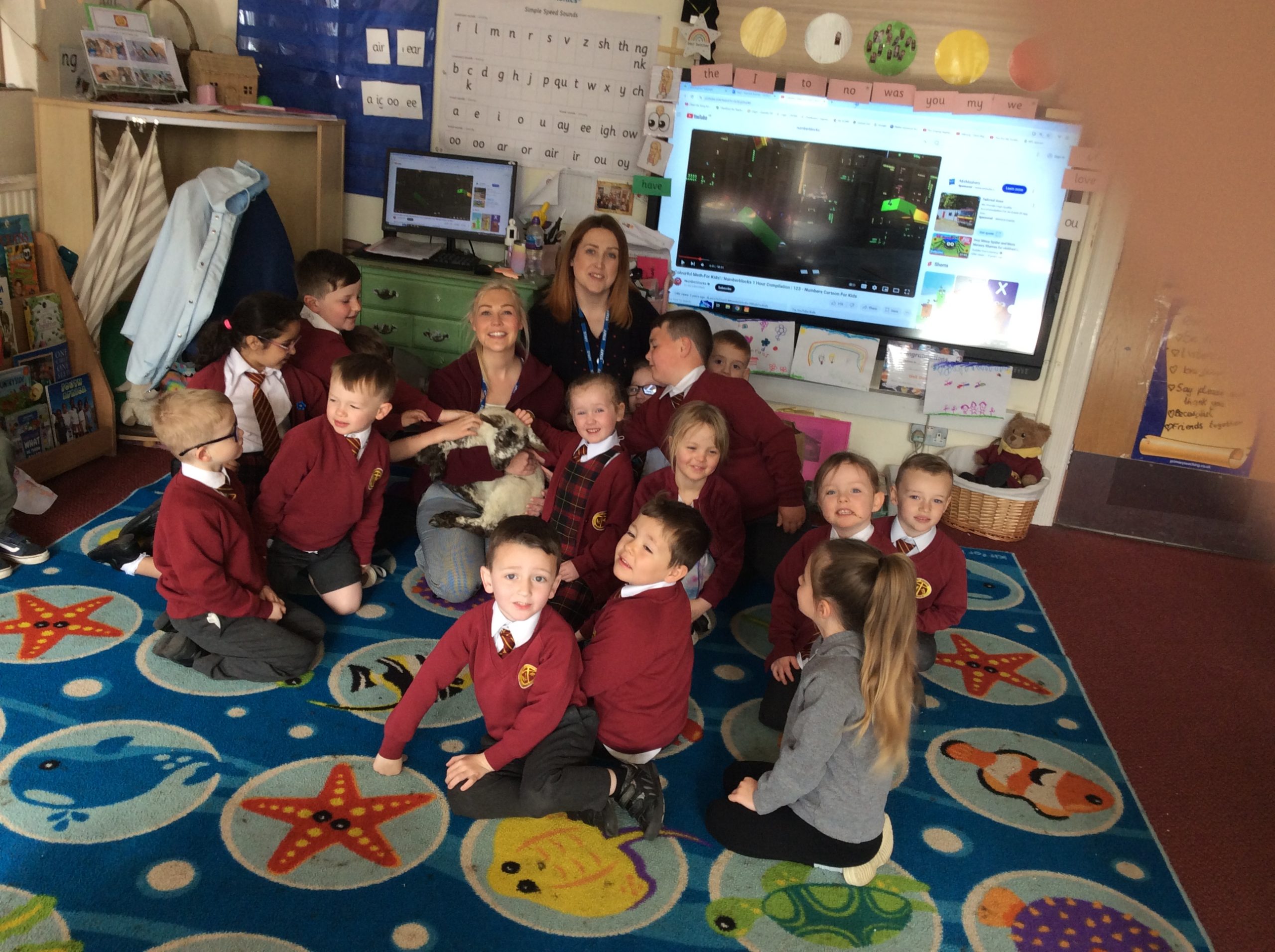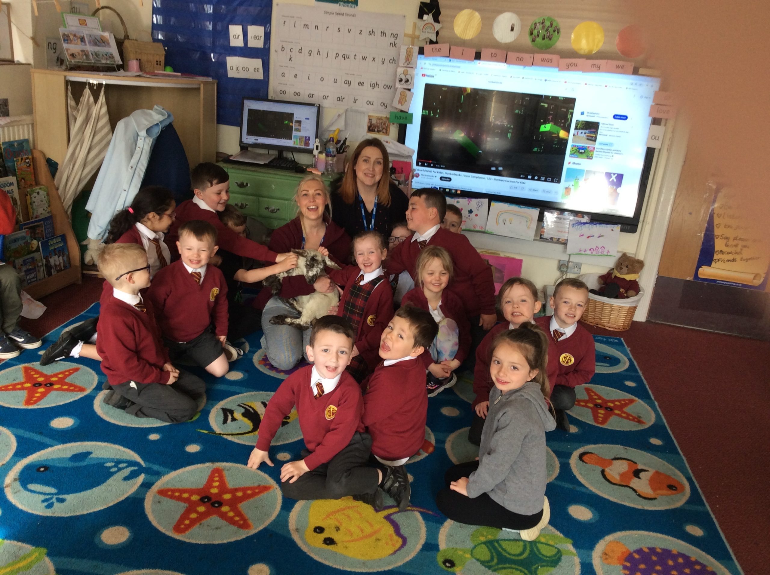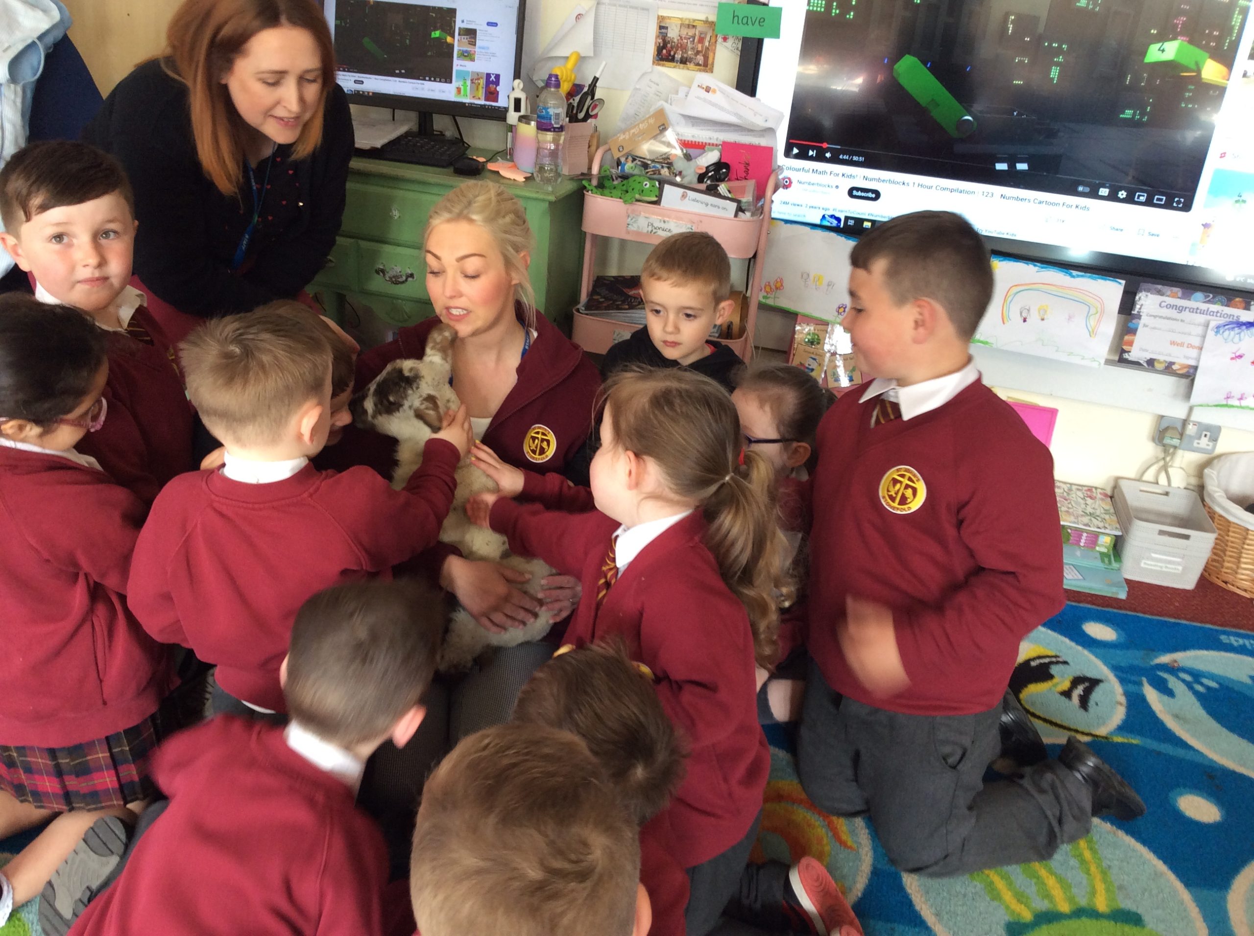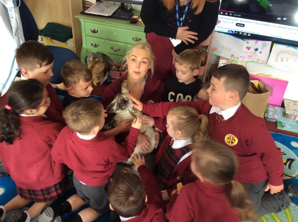 One of our parents brought one of their two week old lambs into school – Norman the lamb was briefly introduced to many children in assembly but he spent most of his visit in Eaglets!