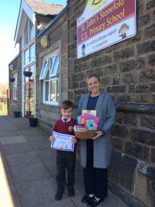 Alban dressed as the BFG has won Teaching Personnel’s World Book Day Competition out of all the schools in East Lancashire! He won a lovely hamper which was presented to him by Florence. Well done Alban and his mum!